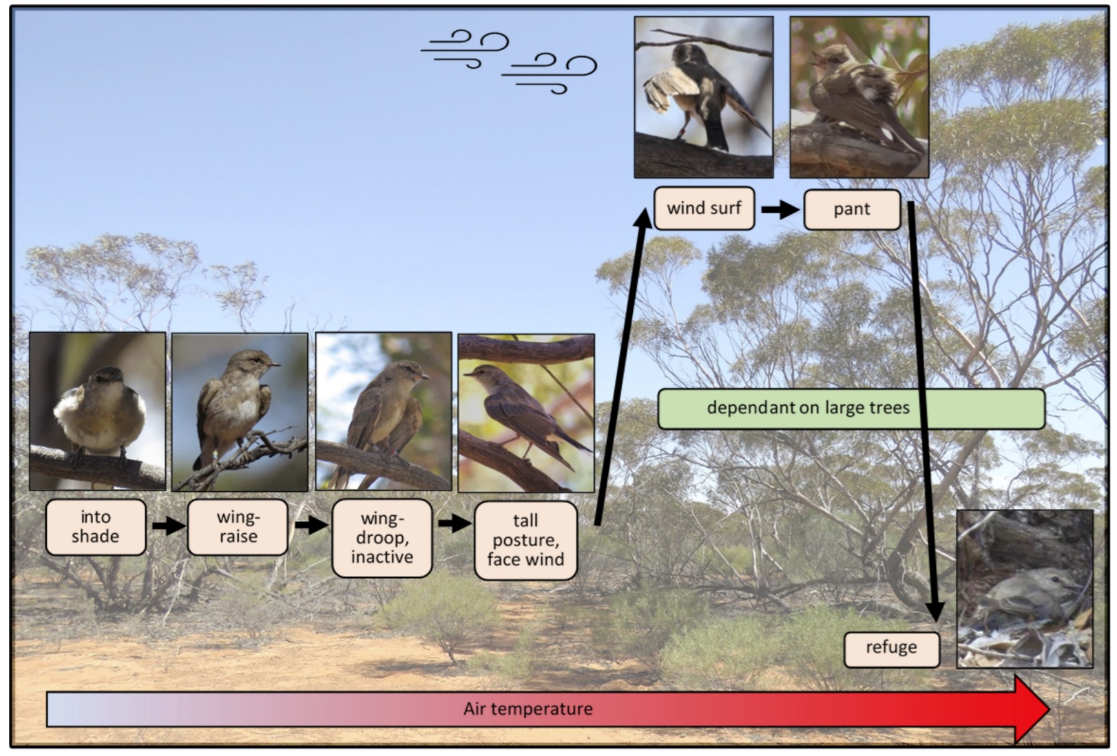 Sharpe et al. 2022. In the Hot Seat: Behavioral Change and Old-Growth Trees Underpin an Australian Songbird’s Response to Extreme Heat. Frontiers in Ecology and Evolution 10: 813567.