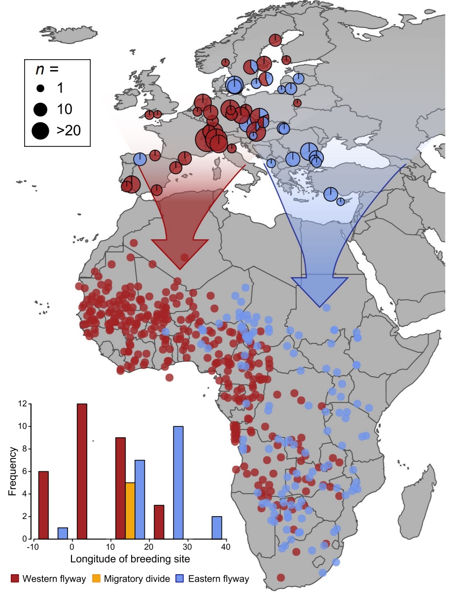 Winkler et al. 2017. Long-Distance Range Expansion and Rapid Adjustment of Migration in a Newly Established Population of Barn Swallows Breeding in Argentina. Current Biology 27: 1080-1084.