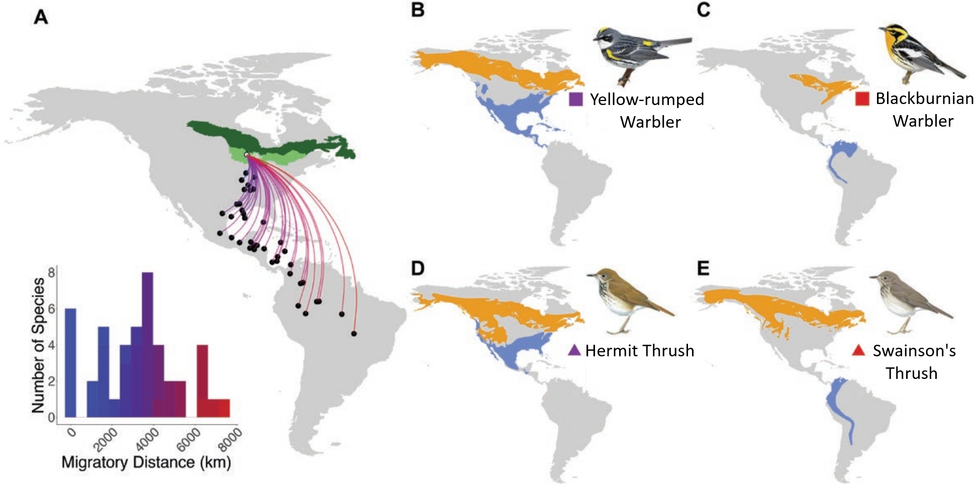 Winger, B. M. and T. M. Pegan. 2021. Migration distance is a fundamental axis of the slow-fast continuum of life history in boreal birds. Ornithology 138: 1–18.