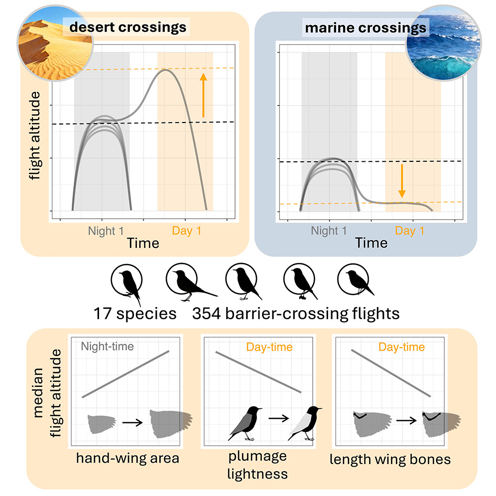 During migration, most birds encounter novel environments. This is especially true for first year long-distance migrants, which often cross completely different ecosystems from their natal sites. Birds may need to adjust to unfamiliar conditions or seek the most favorable site within the novel environment, so exploratory movements can play an important role during the various stages of migration. After arriving at a stopover site, migrants may leave shortly afterwards in any direction to find a more suitable habitat within the “stopover landscape”. Individuals may make exploratory flights to gain familiarity within a patch, or may move continuously in an exploratory manner throughout a stopover. Northern Wheatears conduct exploratory flights on a stopover site prior to committing to departing, presumably to assess suitability of meteorological conditions aloft for the next migratory bout. These exploratory movements have direct consequences for birds’ fitness. Should a bird fail to find sufficient resources on stopover to fuel, it may starve. If it takes too long to accumulate energy, it may arrive at its breeding or wintering grounds too late to compete for a high-quality territory, reducing its indirect fitness. Should it depart in poor conditions, it may require more time to complete its migration, further reducing its probability of settling on a high-quality territory. As such, exploratory movements on stopover that serve to find favourable resources or assess meteorological conditions may have consequences both for an individuals’ immediate fitness (i.e. survival), but also its reproductive potential (From: Züst et al. 2023).